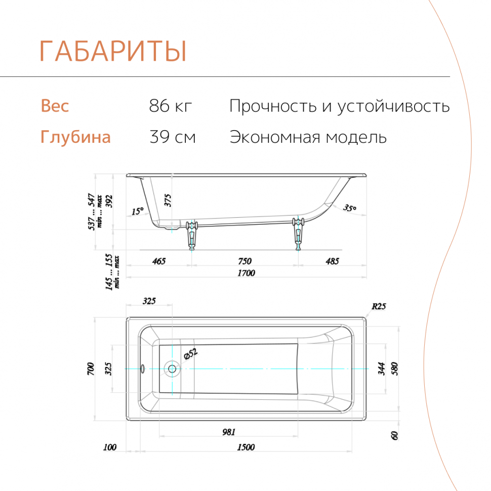 | Подробная комплектация | Ванна, комплект ножек, инструкция |