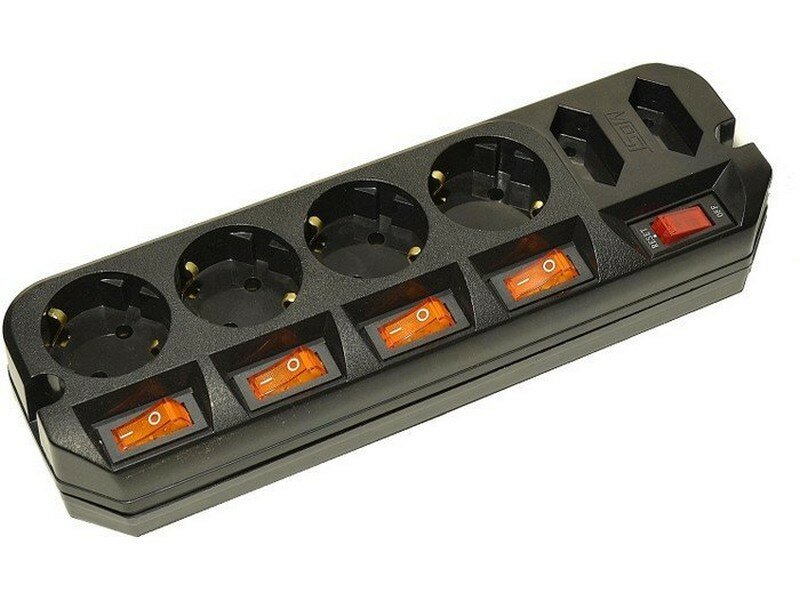 | Дополнительная информация | степень подавления помех: до 30 дБ, максимальная рассеиваемая энергия: 350 Дж, розетки: евро стандарт 4 шт., узкие 2 шт., термобиметаллический предохранитель |