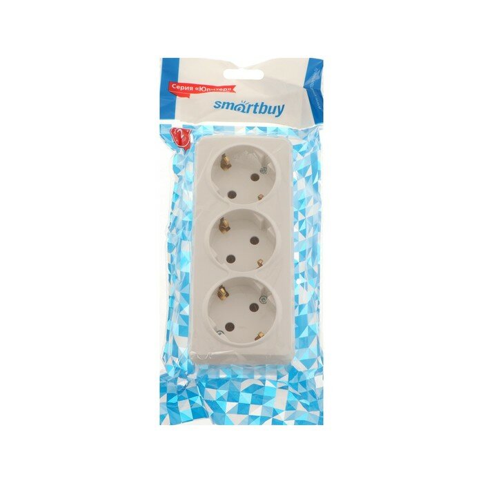 Розетка Smartbuy "Юпитер", 16 А, трехместная, открытая, с з/к, белая информация:
