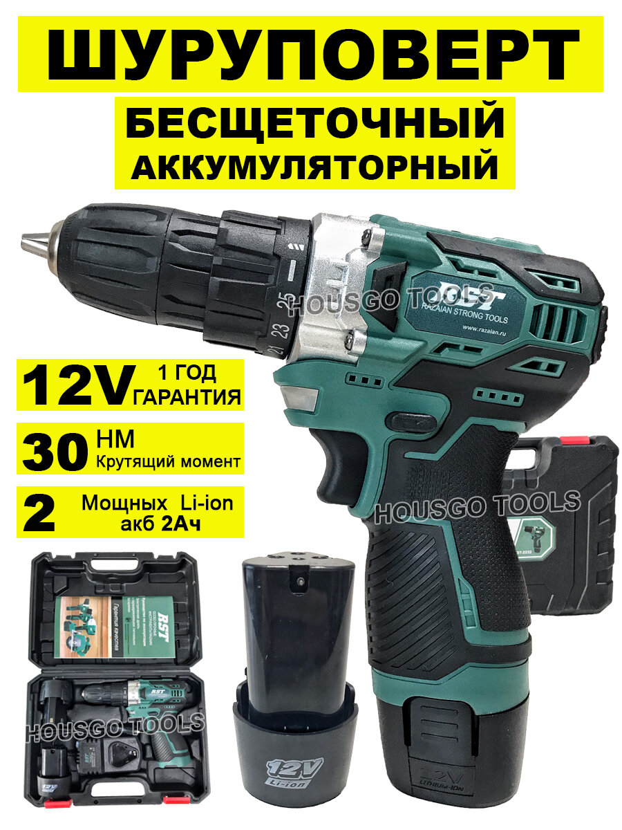 Отзывы на Дрель шуруповерт аккумуляторный бесщеточный 12В в кейс, 1500 об/мин, 2 АКБ Li-ion 2 Ач, 30 Нм, 2 скорости, фонарик, реверс, з/у