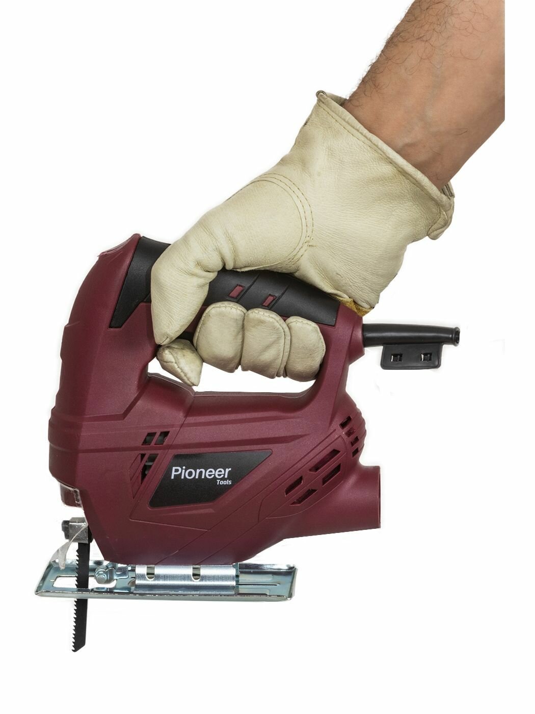 Лобзик электрический Pioneer с щеточным двигателем и защитным экраном, возможность подключения пылесоса, фиксация скорости