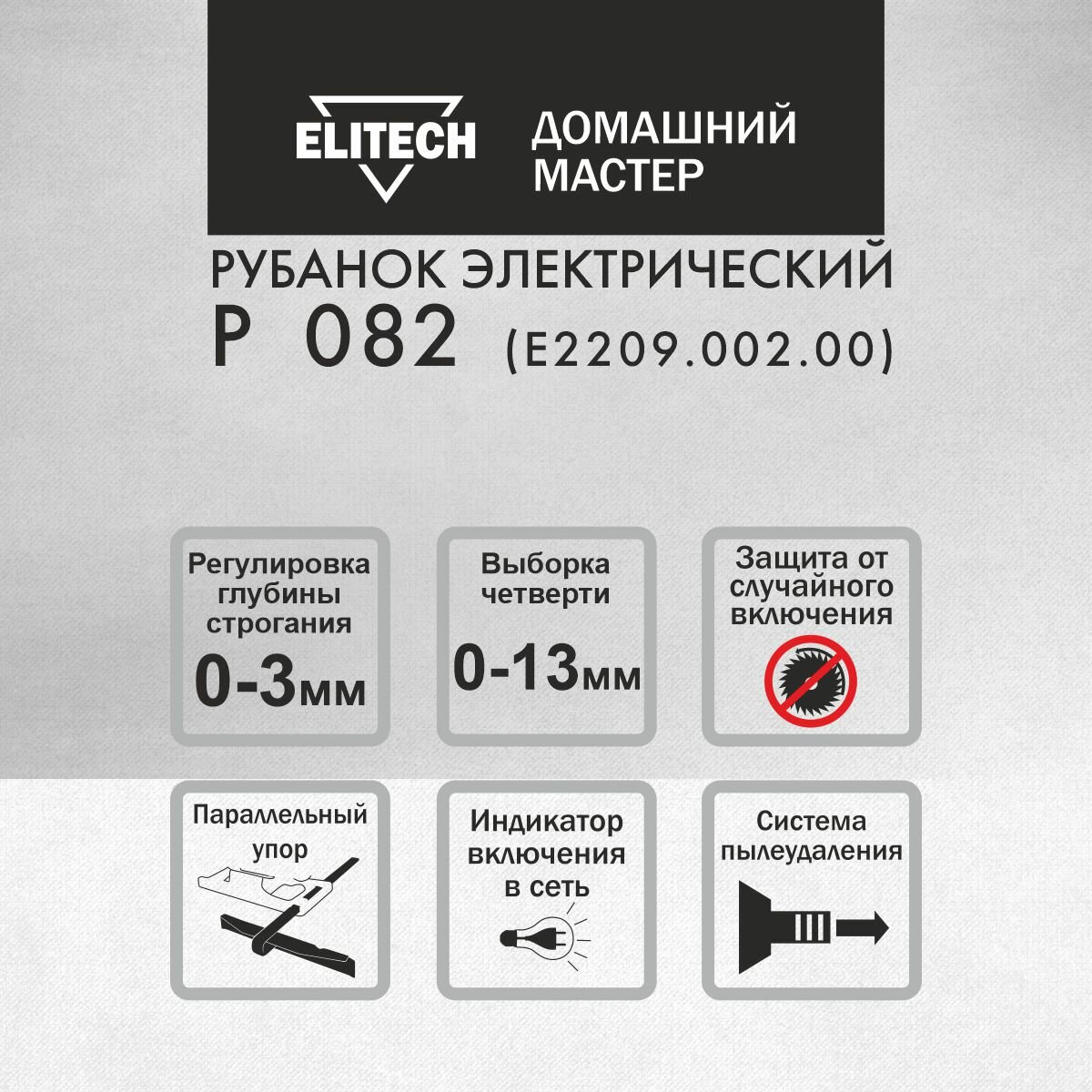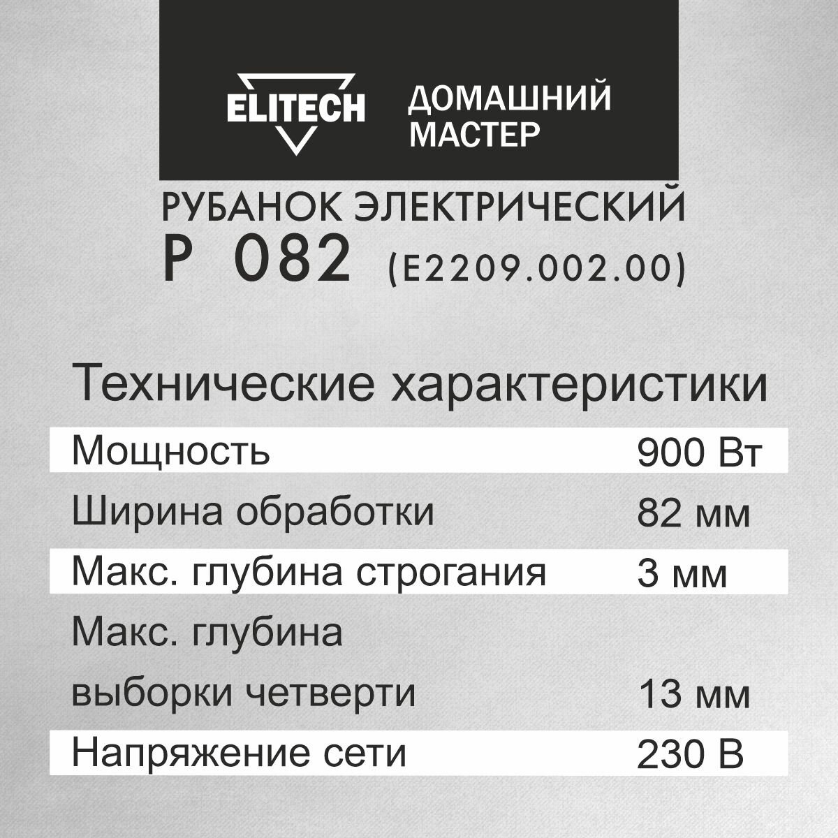Рубанок электрический от сети Elitech ДМ Р 082, ширина 82мм, 900Вт, 3 мм глубина строгания информация: