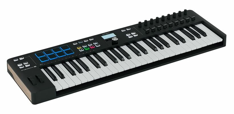 Миди-клавиатура Arturia MIDI клавиатура [KeyLab Essential 49 mk3 Black] 49 клавиш, LCD дисплей, 9 энкодеров, 8 пэдов, 9 фейдеров, 12 кнопок