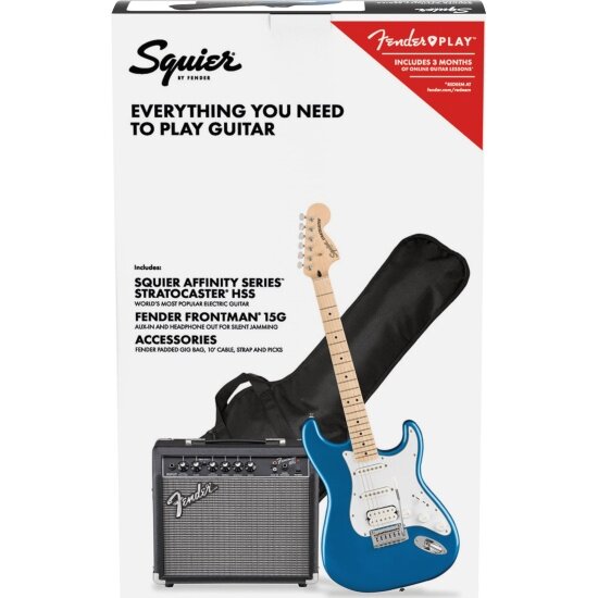 Отзывы на Электрогитара комплект FENDER SQUIER Affinity 2021 Stratocaster HSS Pack MN Lake Placid Blue, 15 вт