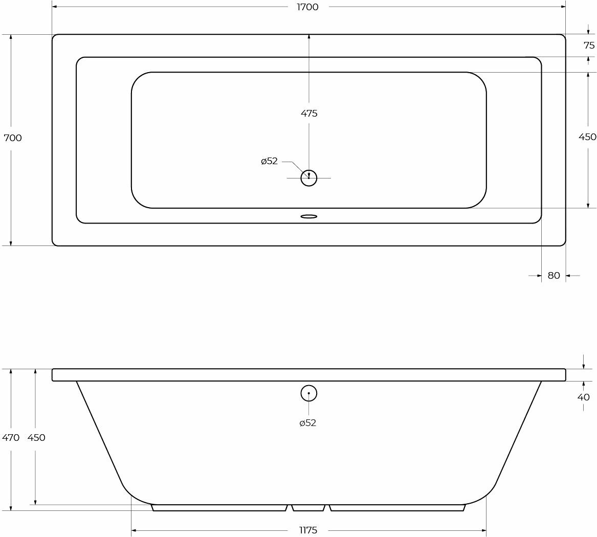 Акриловая ванна Cezares Plane 170-70-45-W37 170х70 PLANE-170-70-45-W37