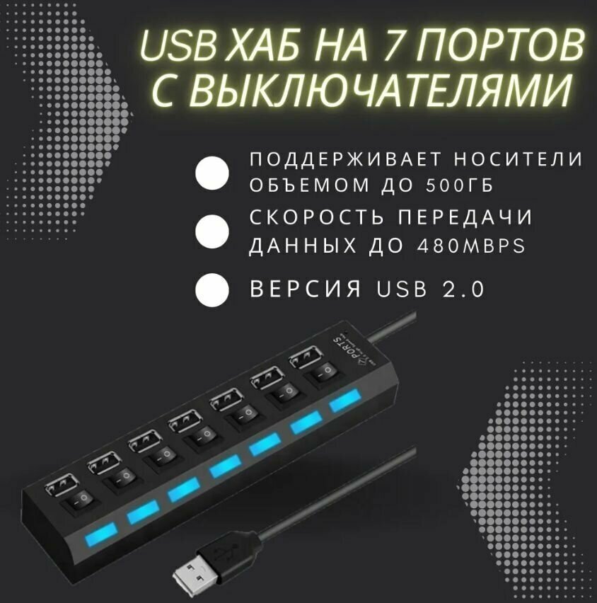 | Дополнительная информация | USB Hub разветвитель на 7 USB с выключателями (Черный) |
