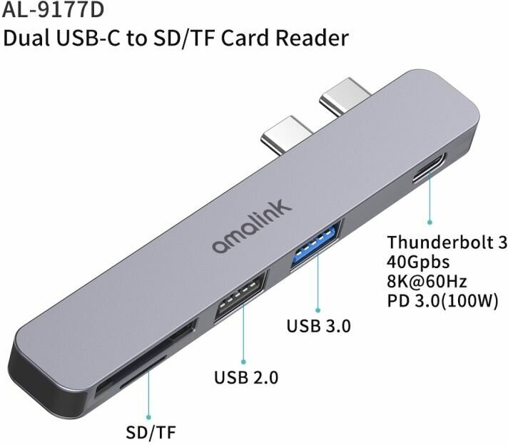 Мультипорт хаб для ноутбука Macbook PRO для Apple, многопорт-концентратор с двойным типом C Thunderbolt hub Converter TF Adapte информация: