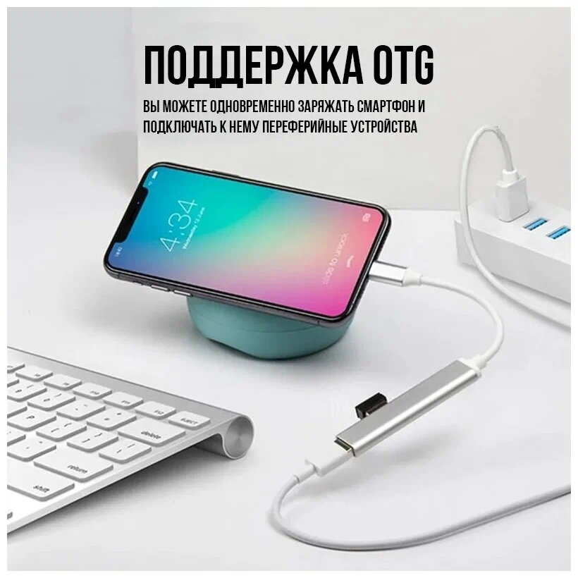 Отзывы на Переходник с Type-C на 4 USB (3.0 и 2.0), OTG, серебристый / хаб для MacBook, ноутбука, смартфона, планшета , серебристый