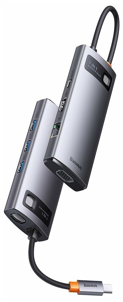 10 цен на Хаб Baseus Metal Gleam Series 7-in-1 Multifunctional Type-C HUB Docking Station (Type-C to HDMI*1+USB3.0*3+PD*1+VGA*1+RJ45*1) Серый (WKWG040013)