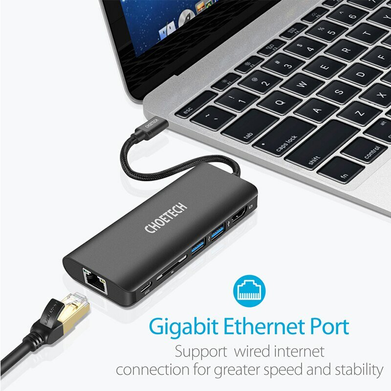 Подставка USB-концентратор (хаб) Choetech 9 в 1 (USB С PD60W, HDMI, RJ45, 3хUSB A/F, SD/TF, USB C 2.0) (HUB-M43-V1)
