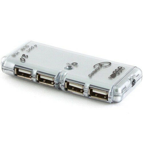 Разветвитель USB Gembird UHB-C244 хаб - концентратор 4 порта USB2.0 + блоком питания прямоугольник - серебристый информация: