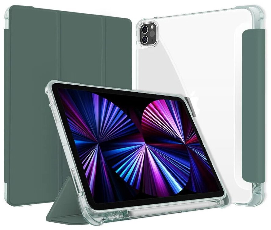 10 цен на Чехол для планшета Apple iPad Pro 11 (2018/2020/2021), с отделением для стилуса, из мягкого силикона, усиленные углы (темно-зеленый)