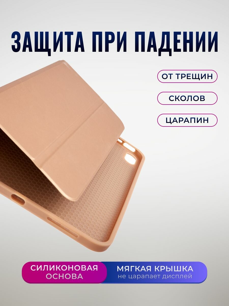 Чехол на Apple iPad Air 11 2025 (M3), Air 11 2024 (M2), Air 5 2022, Air 4 2020, микрофибра, держатель для стилуса, из мягкого силикона (пудровый)