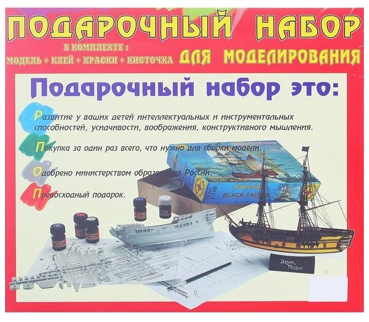 | Дополнительная информация | Подарочный набор для моделирования это: Развитие интеллектуальных и инструментальных способностей, усидчивости, воображения, конструкторского мышления. Это прекрасная возможность создать модели исторических и современных кораблей, самолетов, вертолетов, танков и другой техники. |