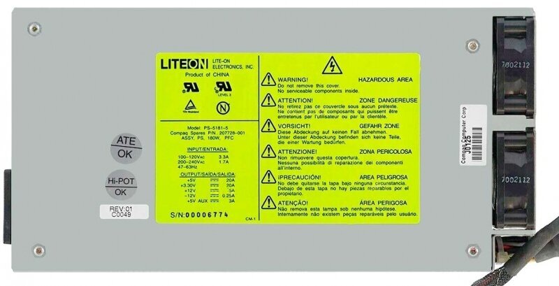 Блок питания 194989-002, 313299-001, ESR113, PS-3381-1C1, HP ProLiant DL380 G3, DL380 G2, 400 Вт для сервера ОЕМ