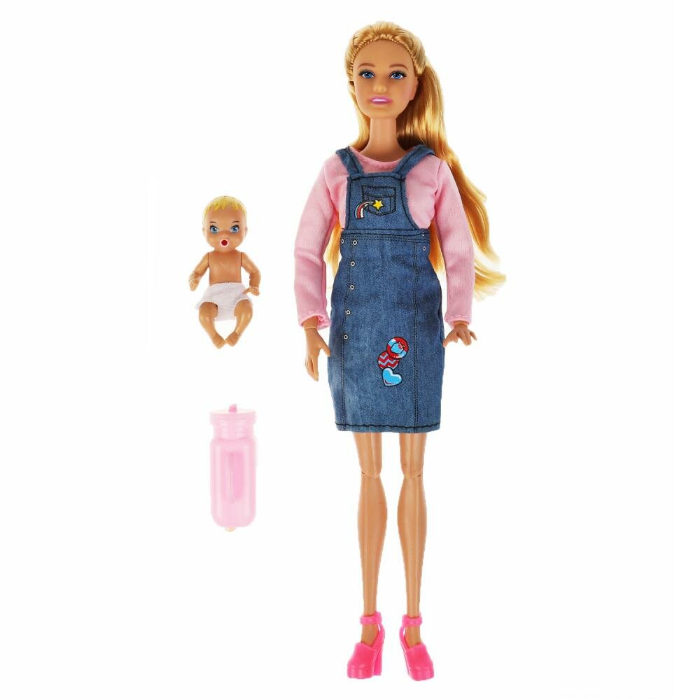Кукла Карапуз София в джинсовом сарафане, 29 см, с ребенком 66001-SET08-S-BB