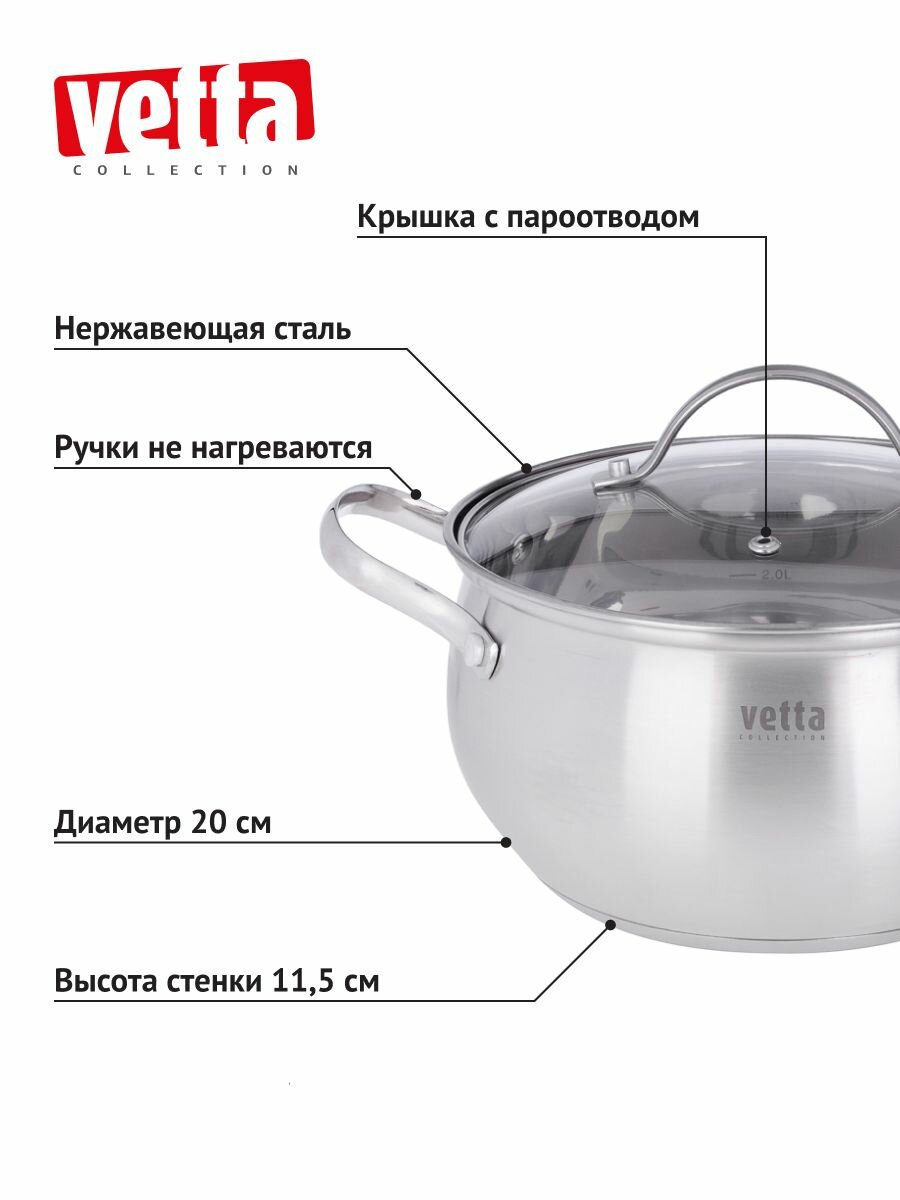Кастрюля VETTA 822-084 3,8л, 20 см, хром 2 080 ₽