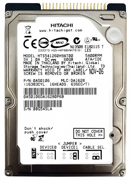 Жесткий диск Hitachi HTS541260H9AT00 60Gb 5400 IDE 2,5" HDD информация: