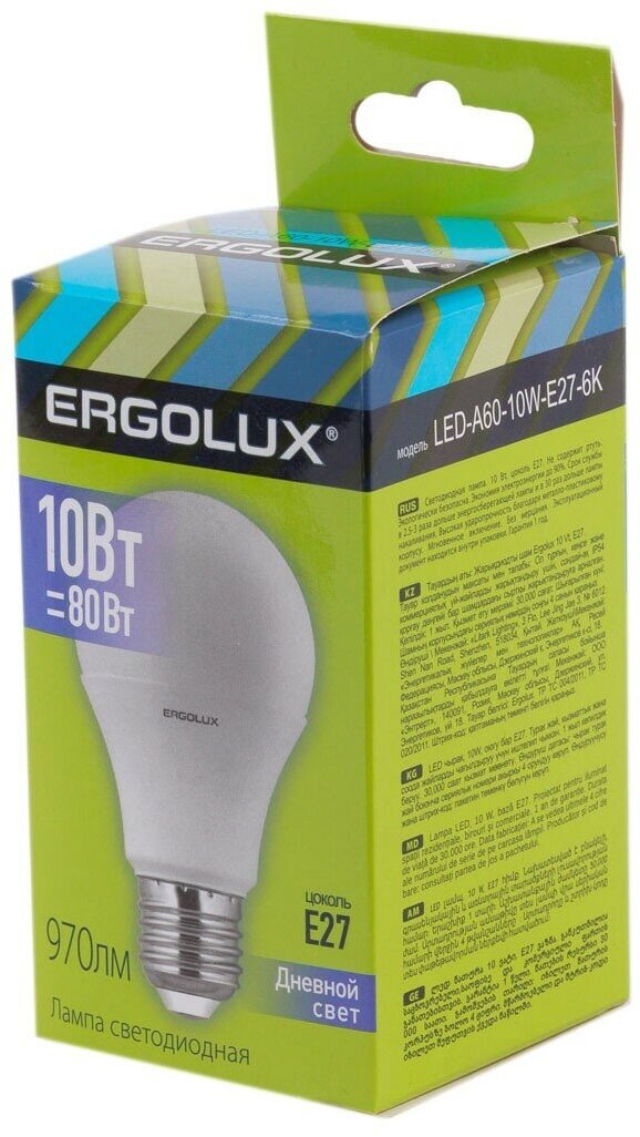 Лампочка ERGOLUX LED-A60-10W-E27-6K 10 Вт, E27, белый