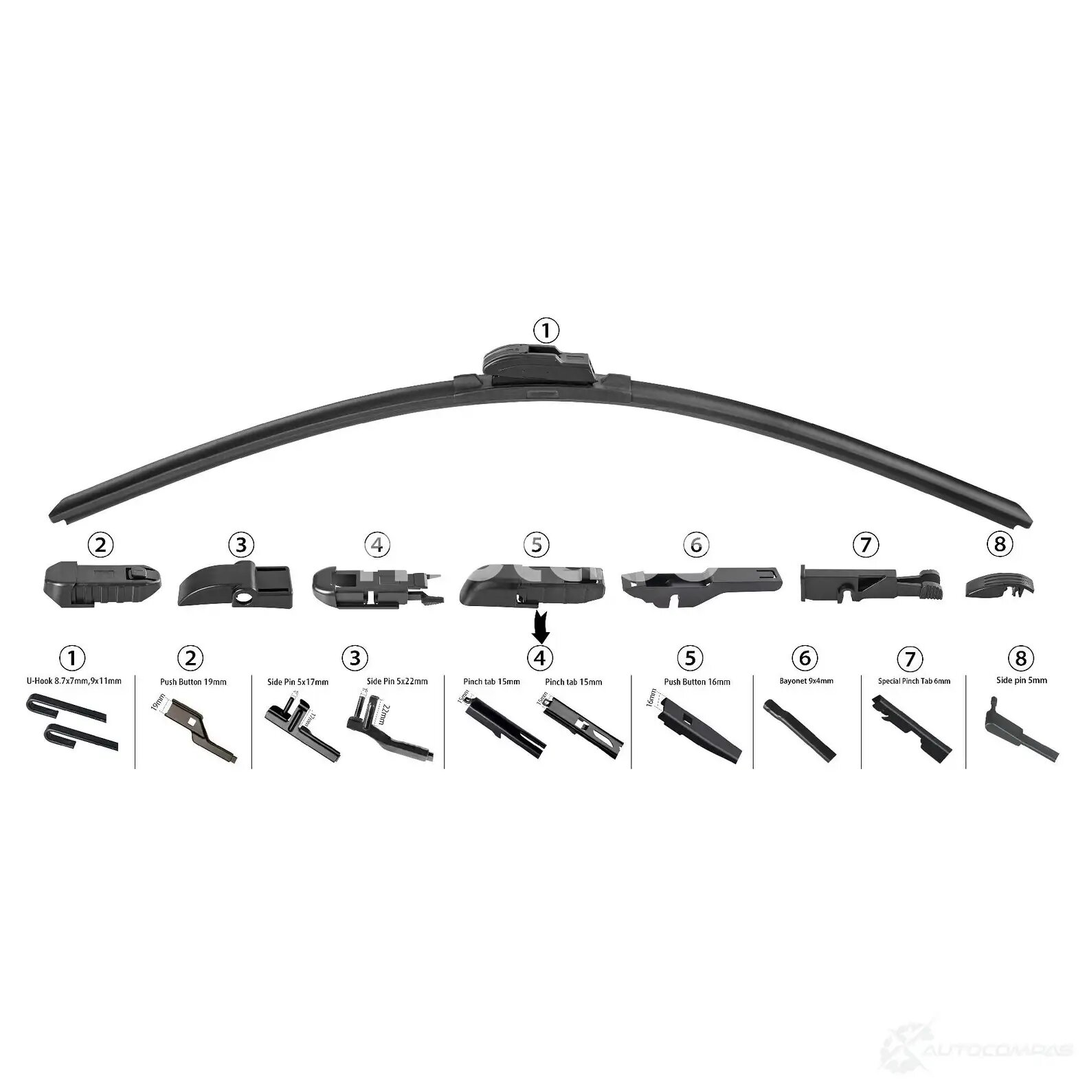 Щетка стеклоочистителя 350 мм, бескаркасная, с 8-ю адаптерами