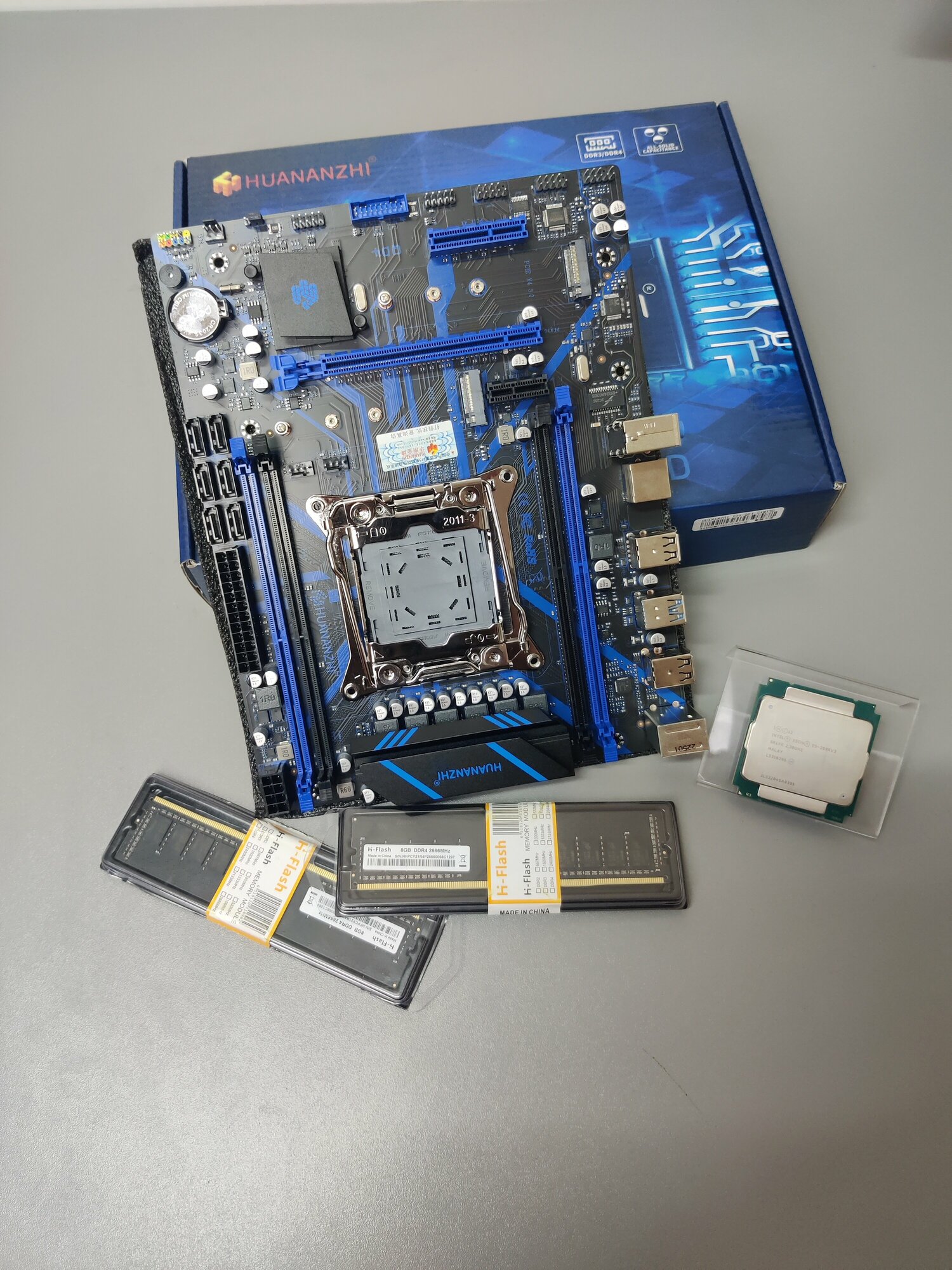 Отзывы на Комплект HUANANZHI X99 QD4 LGA 2011-3 / Xeon E5 2696v3 2.3 ГГц / H-FLASH 32 Гб (2х16Гб) DDR4 2666 МГц