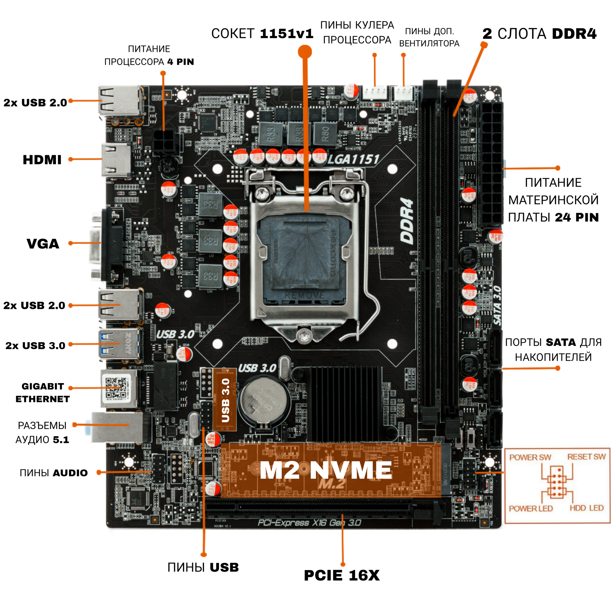 Материнская плата H110 LGA 1151v1, DDR 4, USB 3.0, Intel Core i3/ i5/ i7 информация: