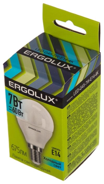 Лампа светодиодная ERGOLUX LED, 7Вт, E14,4500K, 172-265В, шар информация: