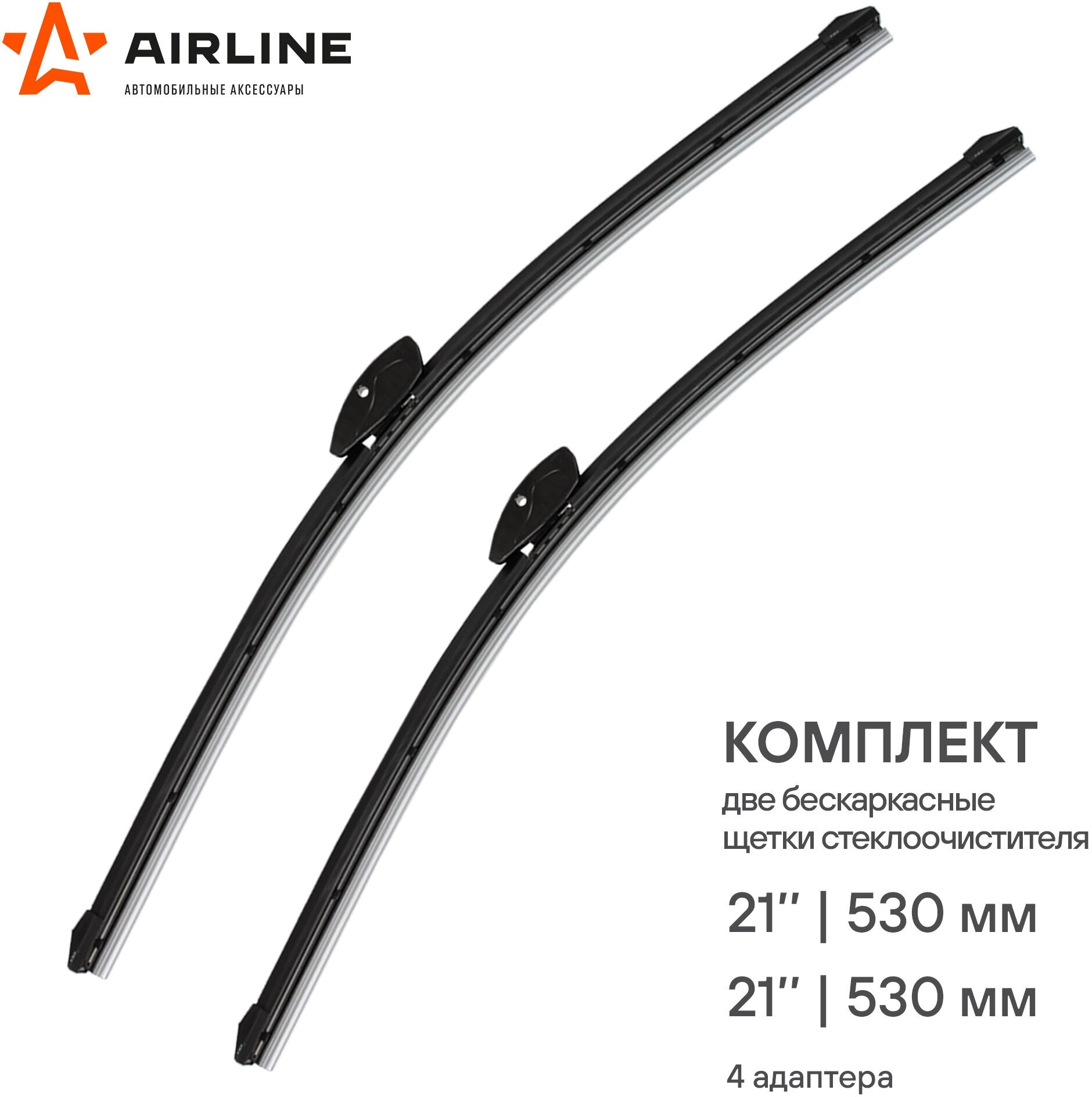 Щетки стеклоочистителя AIRLINE 530530 мм 2121 бескаркасные 2 шт 4 адаптера AWB-BK-530K
