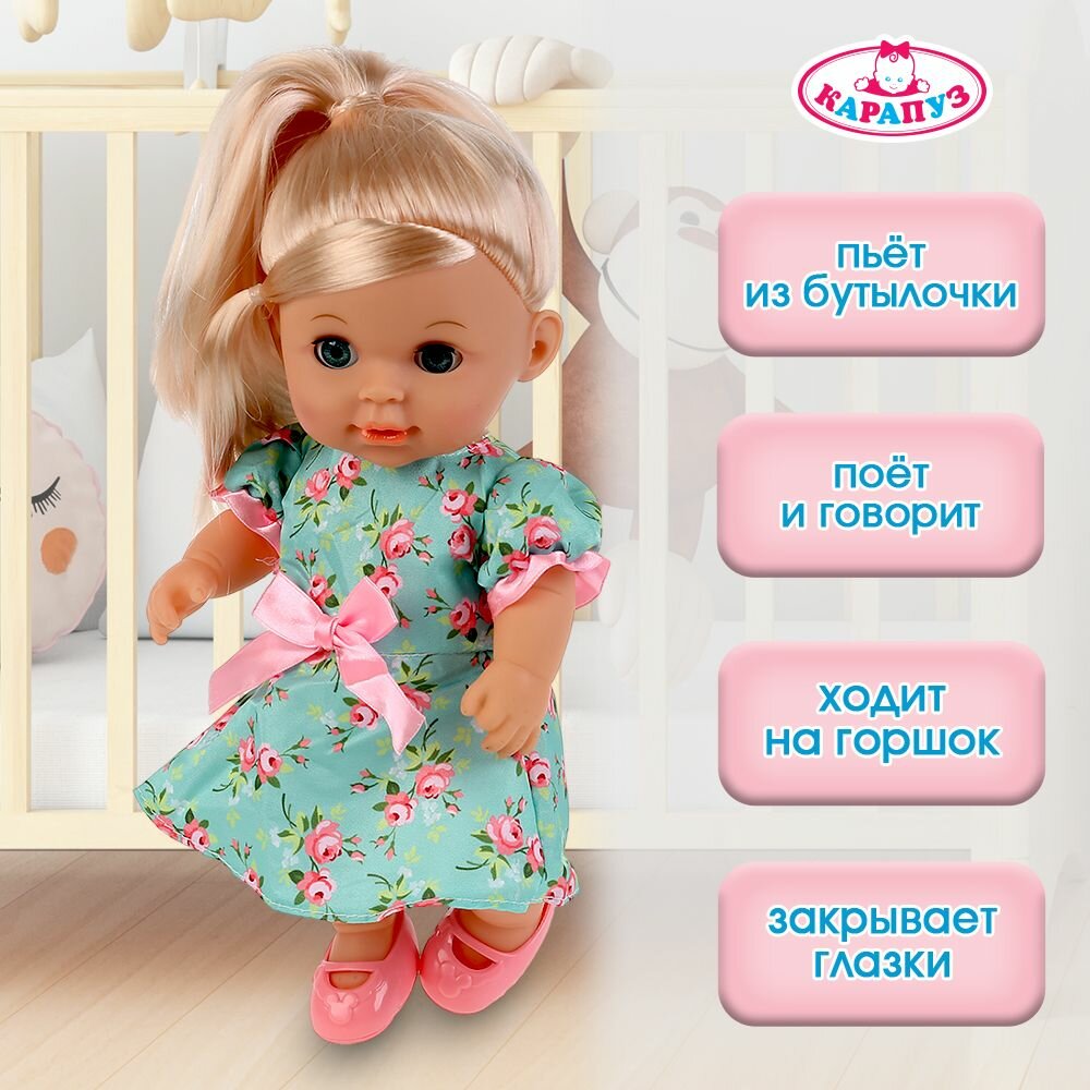 Кукла Карапуз озвученная Алина 30 см, песня абвгдйка, пьет, писает, набор одежды