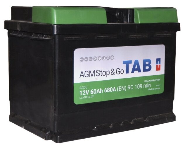 60 Ач Tab Ecodry Stop&Go Agm О/П (213060) (680А Д*Ш*В 24,2*17,5*19 См) TAB арт. 213060 информация:
