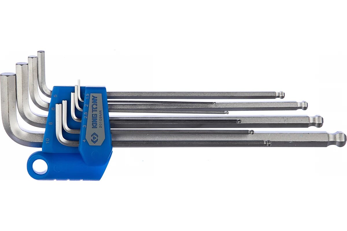 Набор Г-образных шестигранников 1,5-10 мм, длинные, с шаровым окончанием, 9 предметов KING TONY 20109MR