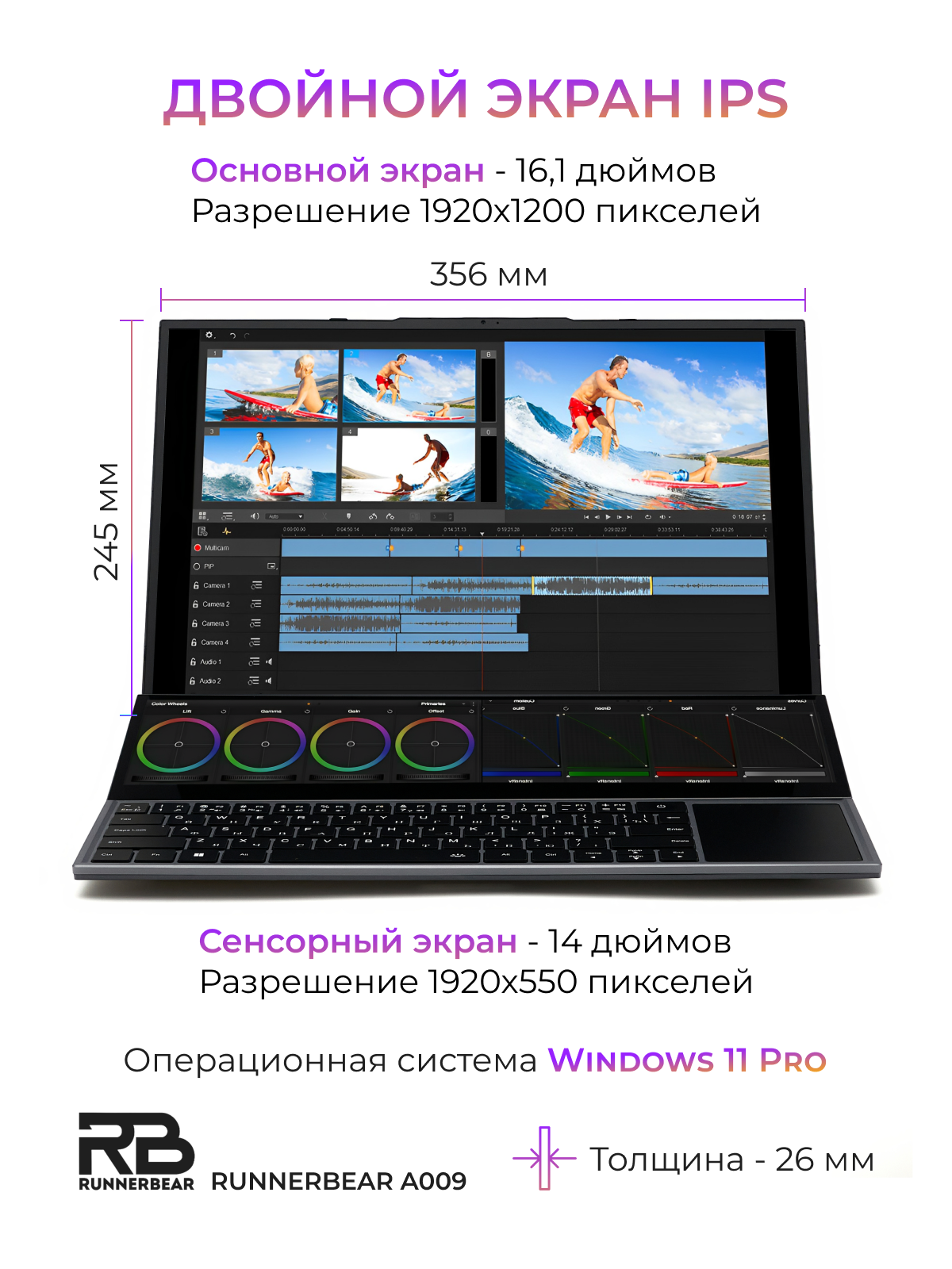 16,1"+14" Ноутбук RunnerBear A009, серый [1920*1080, IPS, Intel Core i7-10750H 2,6Ггц, RAM 64Гб, SSD 4Тб, Intel® UHD Graphics, Win 11Pro] информация: