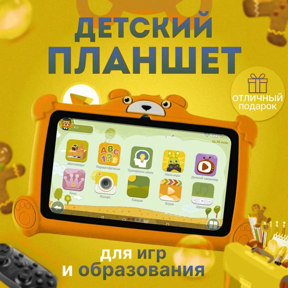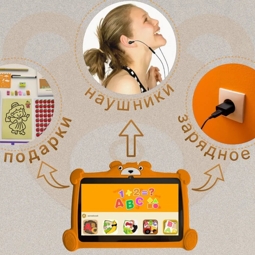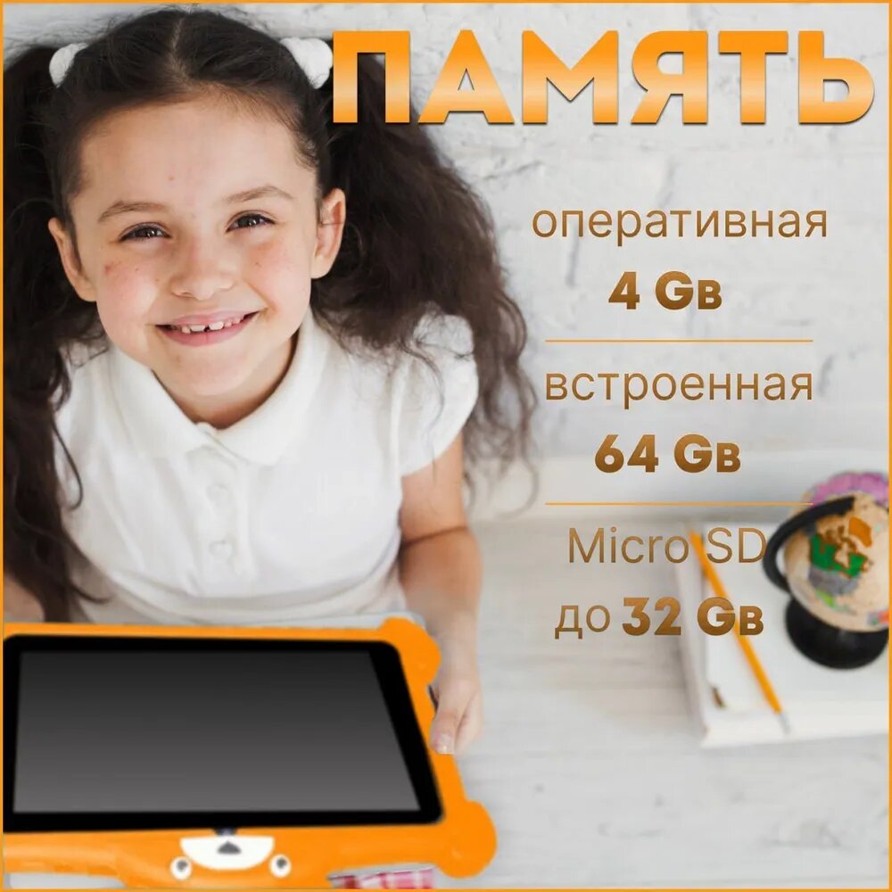 Детский планшет для обучения, игр и развлечений Atouch K96 Kids 4Gb/64Gb/7"1024x600/ Wi-Fi /BT/5Mpix/2Mpix/3000mAh/Оранжевый информация: