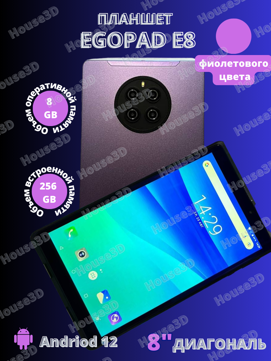 Планшет EGOPAD E8 8/256 GB 8" Android 12 фиолетовый информация: