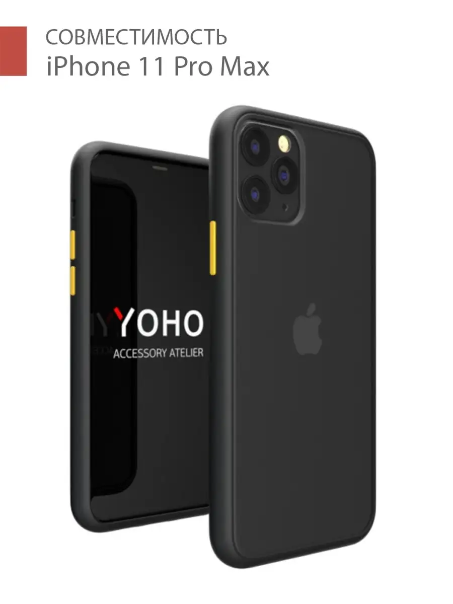Yoho Чехол накладка бампер для iPhone 11 Pro Max, черный-желтый, противоударный, матовый информация: