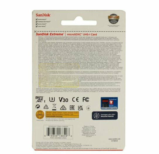Карта памяти Micro SecureDigital 256Gb SanDisk Extreme microSDHC class 10 UHS-1 A2 V30 (SDSQXAV-256G-GN6GN) Gaming информация: