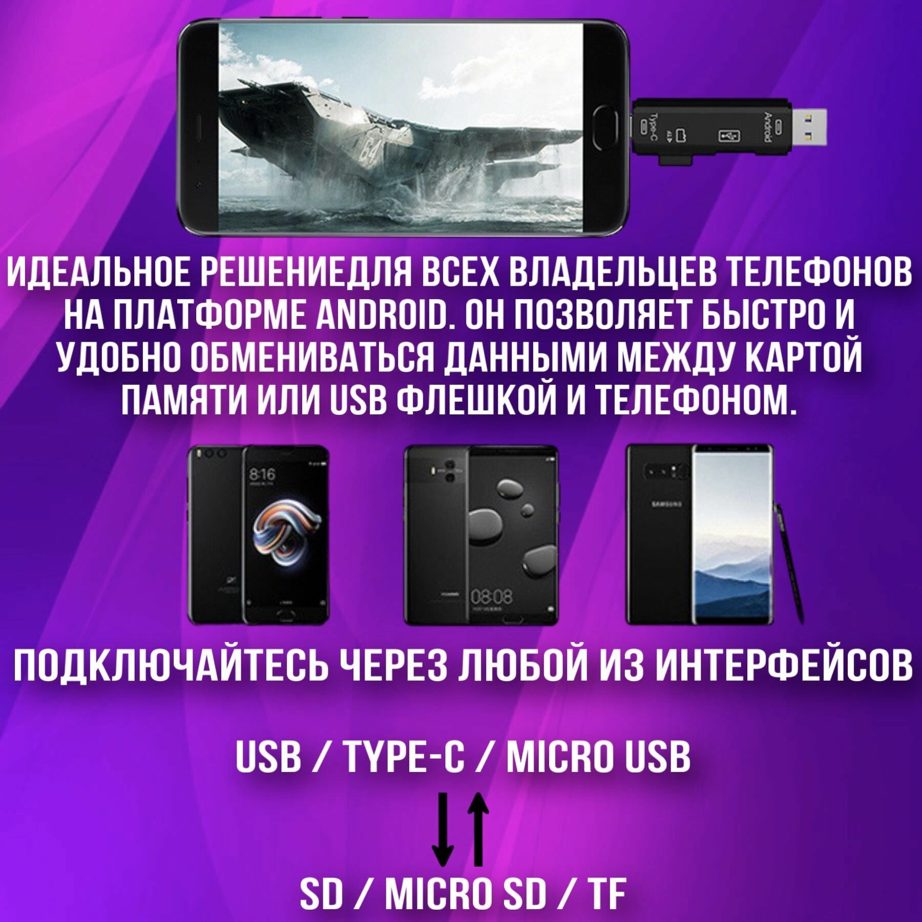 Картридер USB - Type C - Micro USB информация: