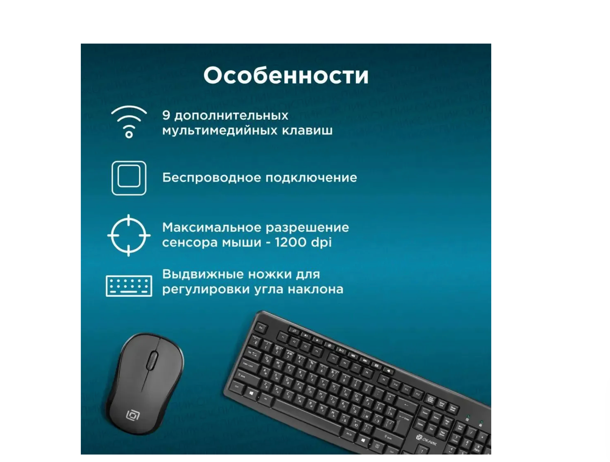 Комплект: клавиатура и мышь, Oklick, USB, беспроводной, черного цвета информация: