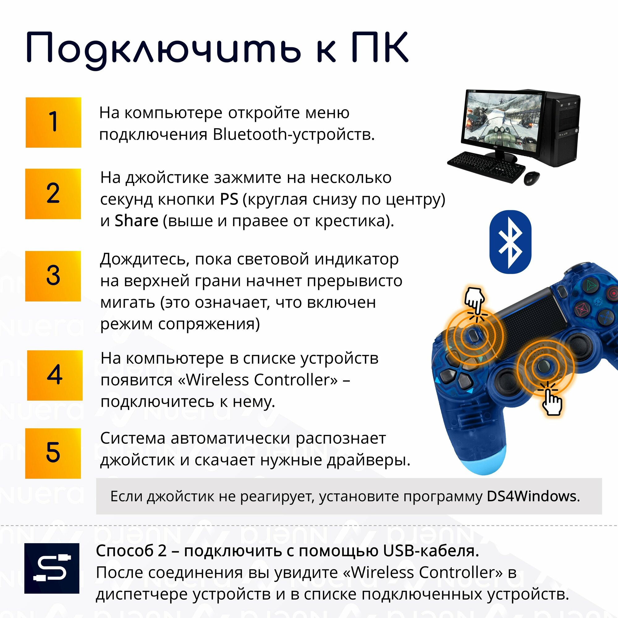 Беспроводной геймпад для PS4 с зарядным кабелем, прозрачный синий / Bluetooth / джойстик для PlayStation 4, iPhone, iPad, Android, ПК / Original Drop информация: