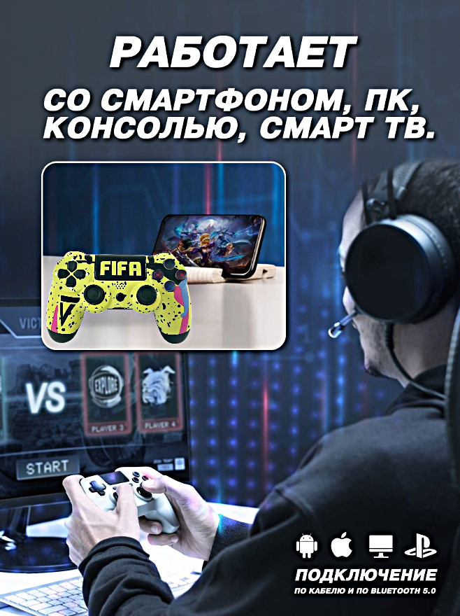 Геймпад беспроводной игровой джойстик для PlayStation 4, ПК, iOs, Android, Bluetooth, USB, WinStreak, FIFA желтый информация: