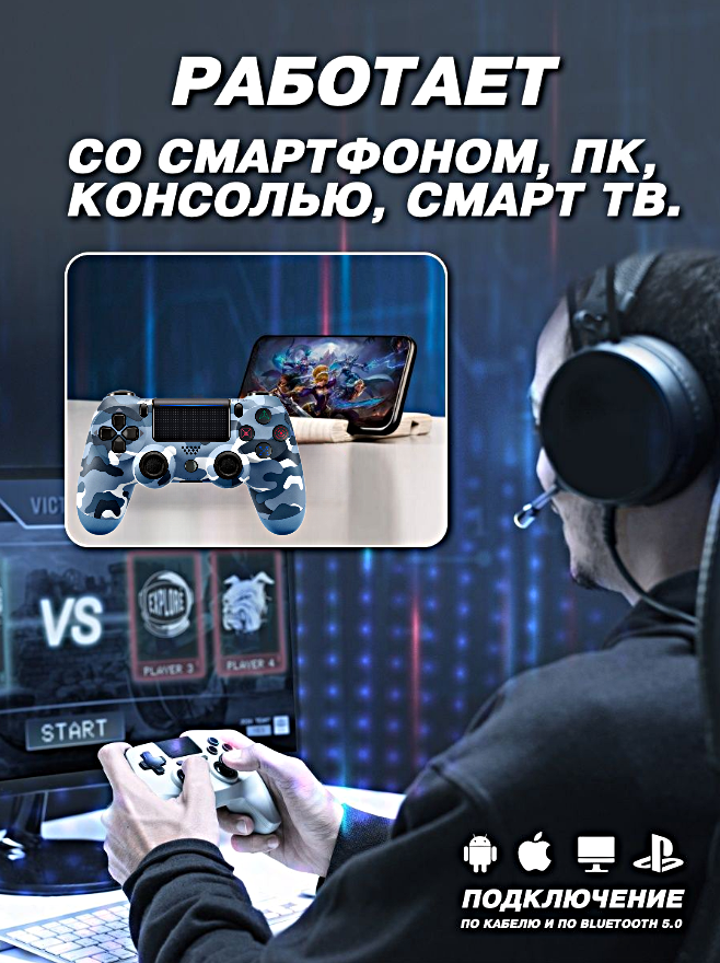 Геймпад беспроводной игровой джойстик для PlayStation 4, ПК, iOs, Android, Bluetooth, USB, WinStreak, Синий хаки информация: