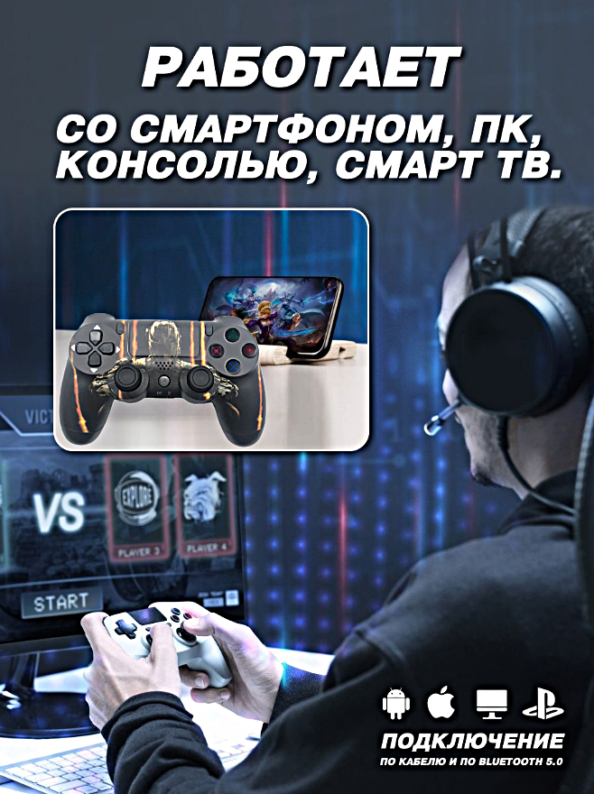 Геймпад беспроводной игровой джойстик для PlayStation 4, ПК, iOs, Android, Bluetooth, USB, WinStreak, Call of Duty Черный информация: