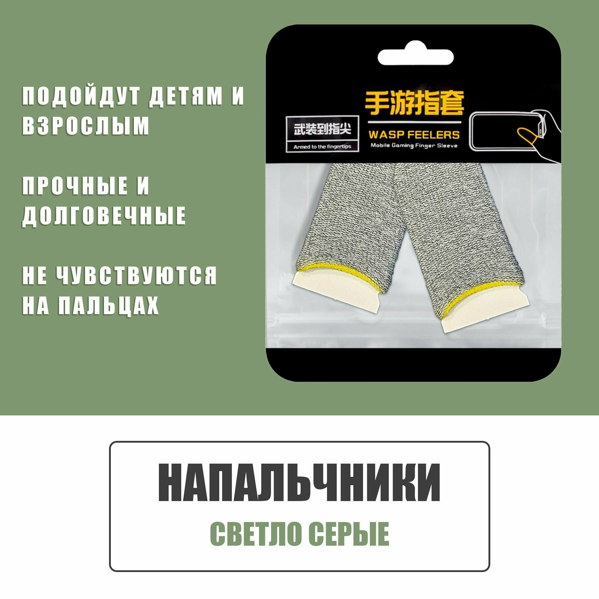 Отзывы на Сенсорные напальчники PUBG / Напальчники игровые для смартфона, телефона и планшета / 2 шт./ Светло серые с желтым