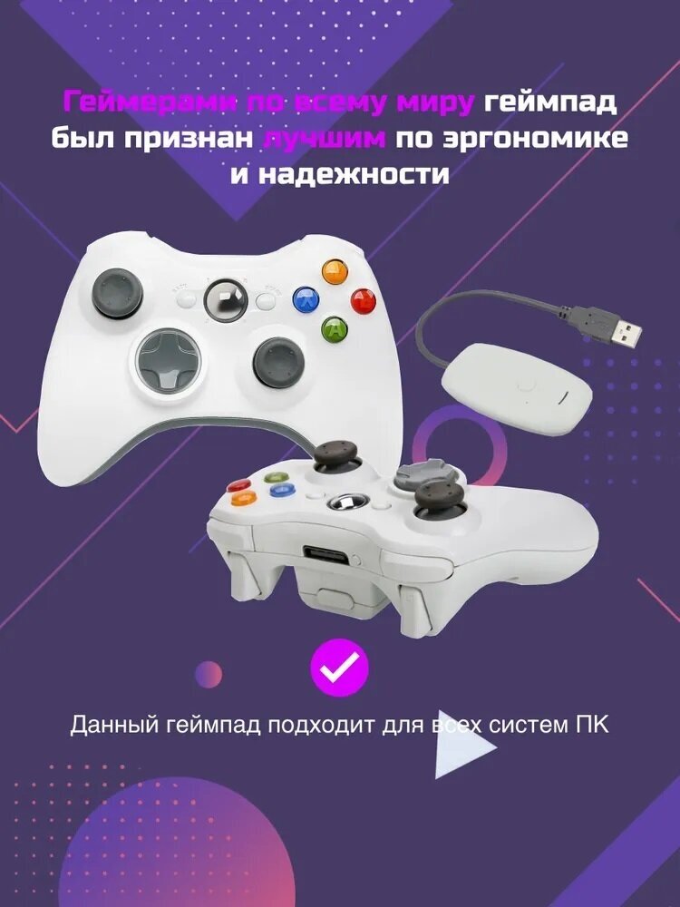 Геймпад/джойстик для консоли Xbox 360/PC/PS3 телефона с ресивером белый информация: