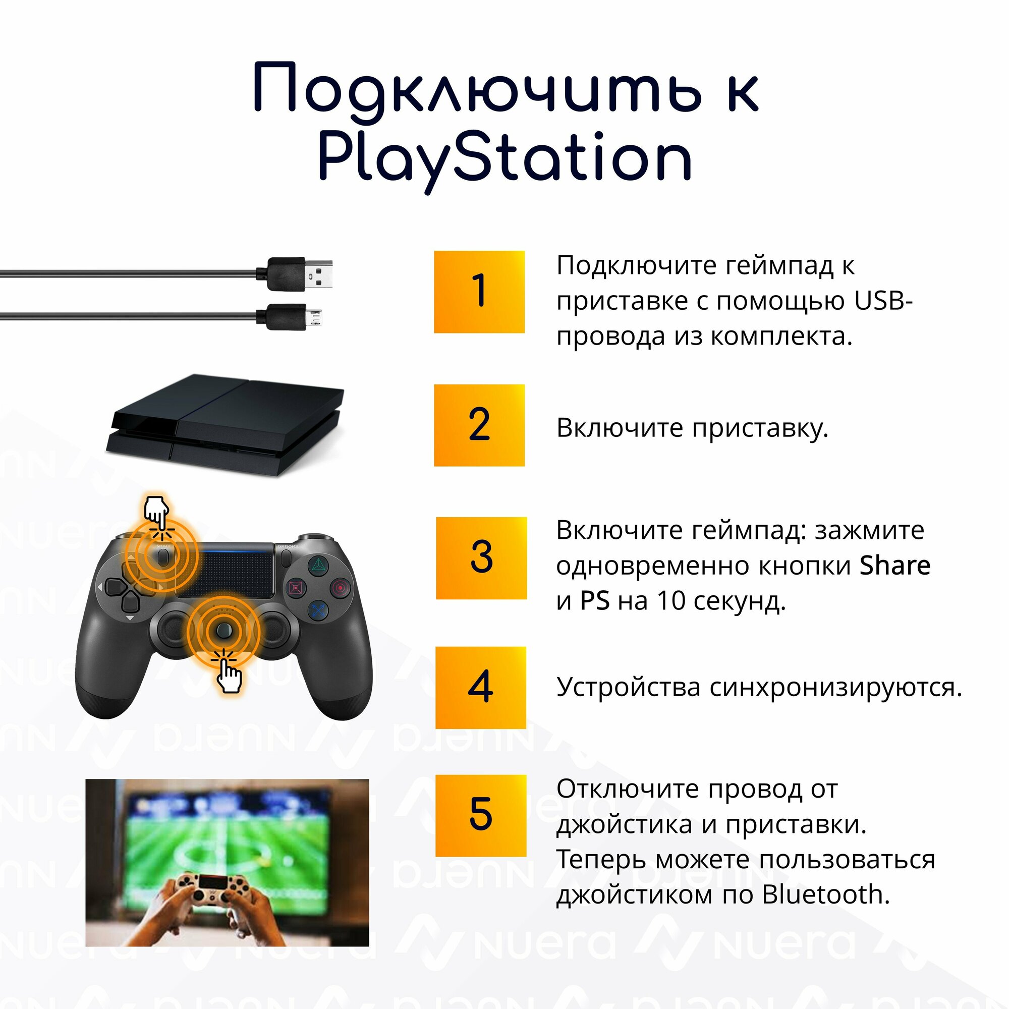 Беспроводной геймпад для PS4 с зарядным кабелем, оранжевый / Bluetooth / джойстик для PlayStation 4, iPhone, iPad, Android, ПК / Original Drop 2 519 ₽