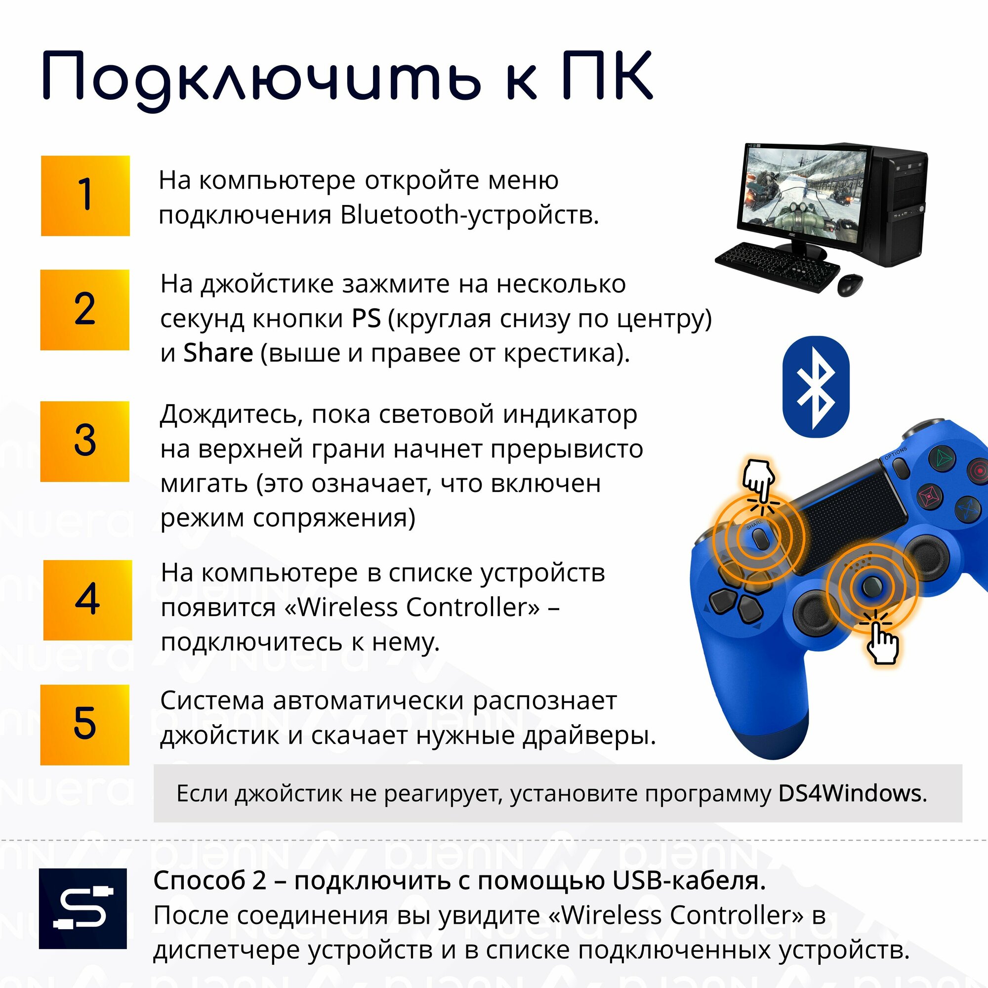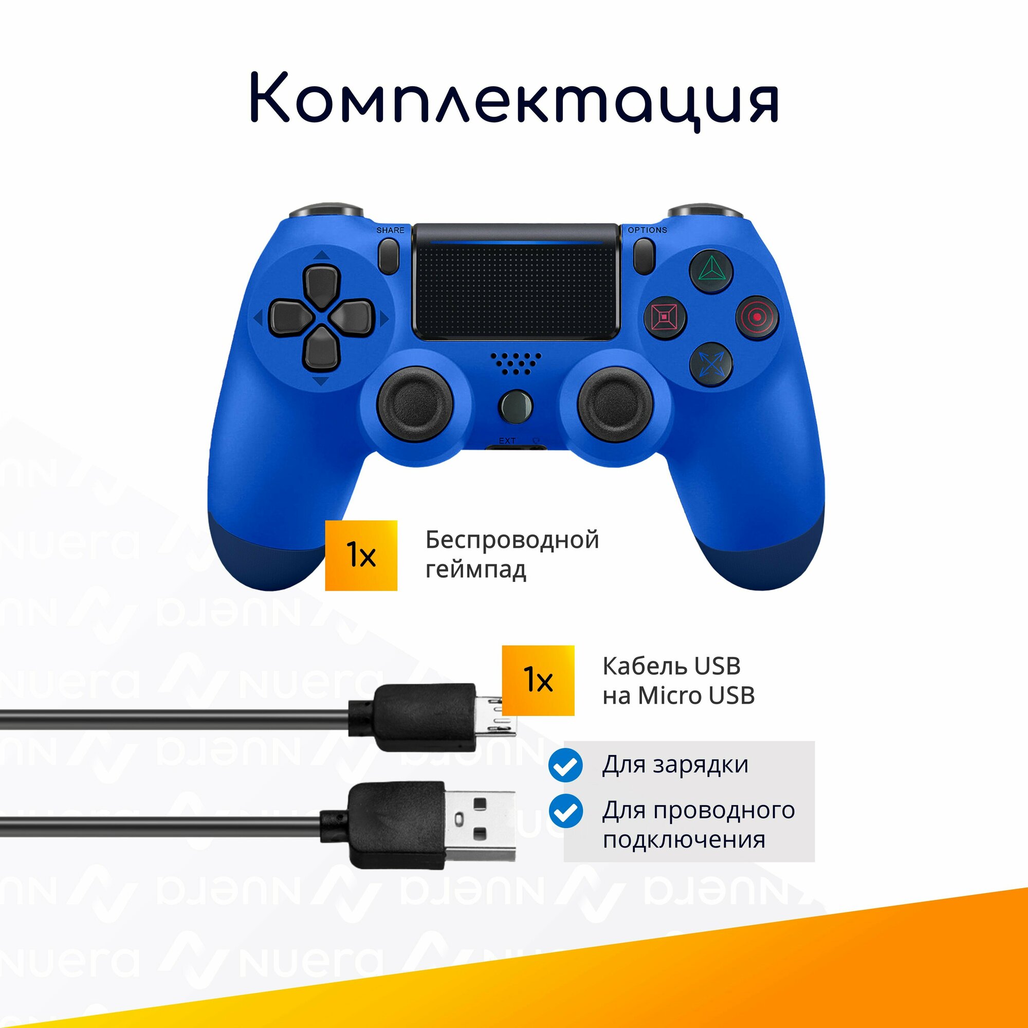 Беспроводной геймпад для PS4 с зарядным кабелем, синий / Bluetooth / джойстик для PlayStation 4, iPhone, iPad, Android, ПК / Original Drop информация: