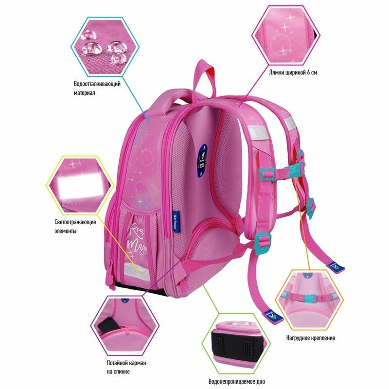 Отзывы на Ранец ортопедический школьный Berlingo для девочки, Profi, "Bubble Unicorn", 36х28х14 см, 2 отдела, 4 кармана (RU06302)