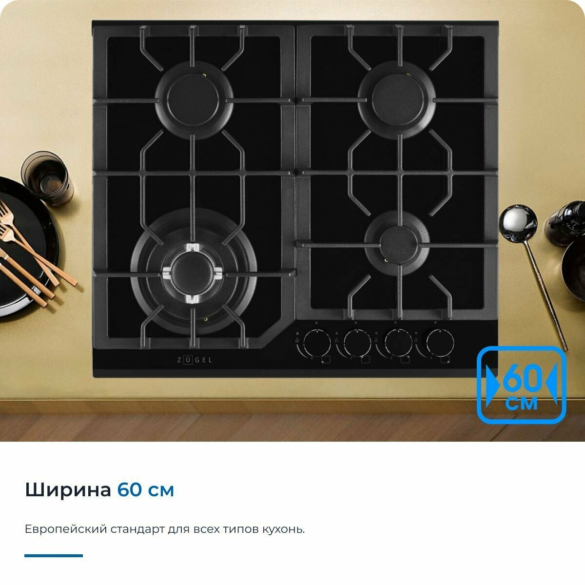Встраиваемая газовая варочная панель ZUGEL ZGH601B черная