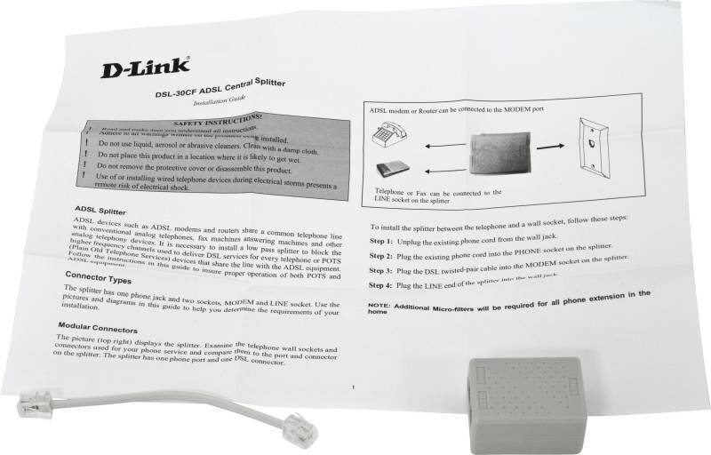 Сплиттер DialUp D-Link DSL-30CFRS RJ-11 Annex ALM белый информация: