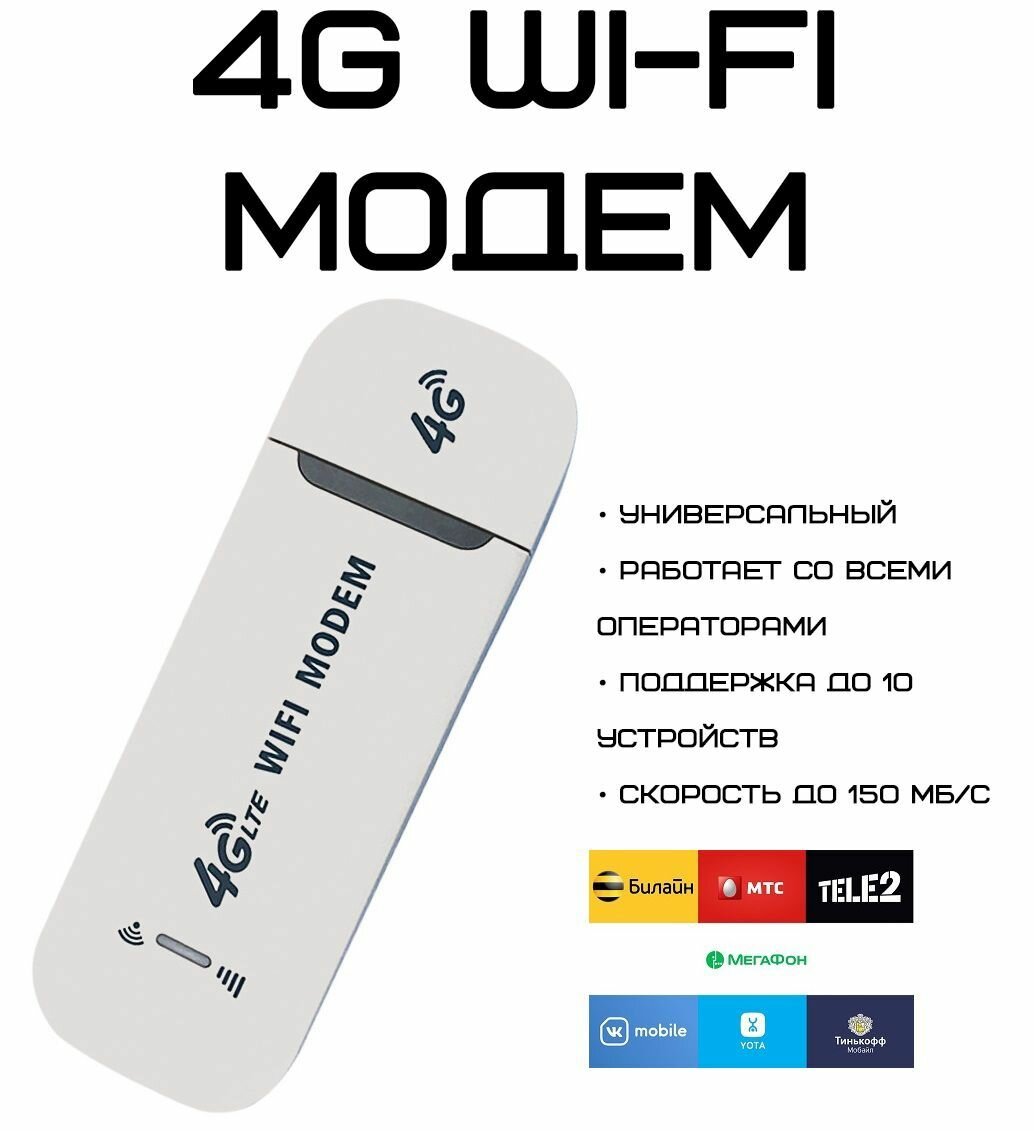 Карманный беспроводной Wi Fi модем 4G USB белый, до 10 устройств
